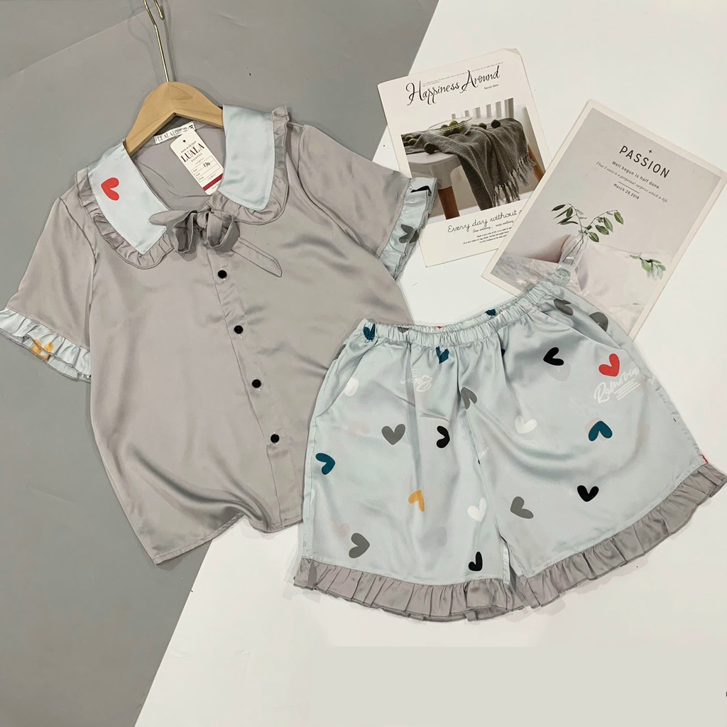 Pijama cộc đùi lụa satin latin phối hàn cao cấp hàng loại 1, sang xịn, mềm mát, bao lỗi 1 đổi 1 free ship